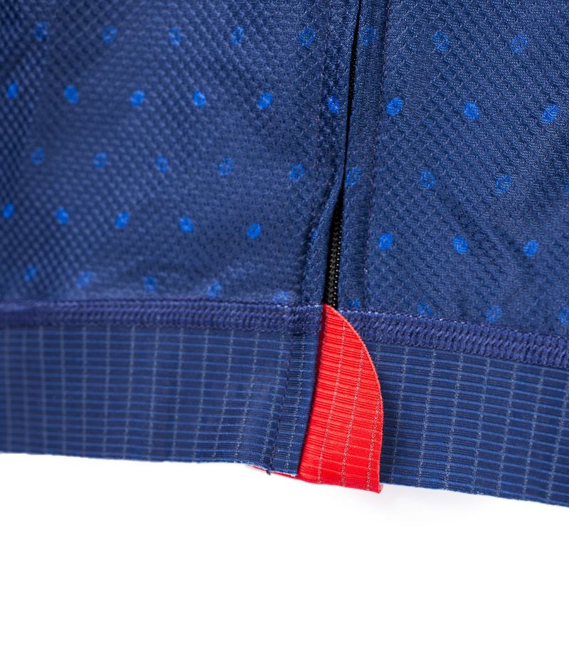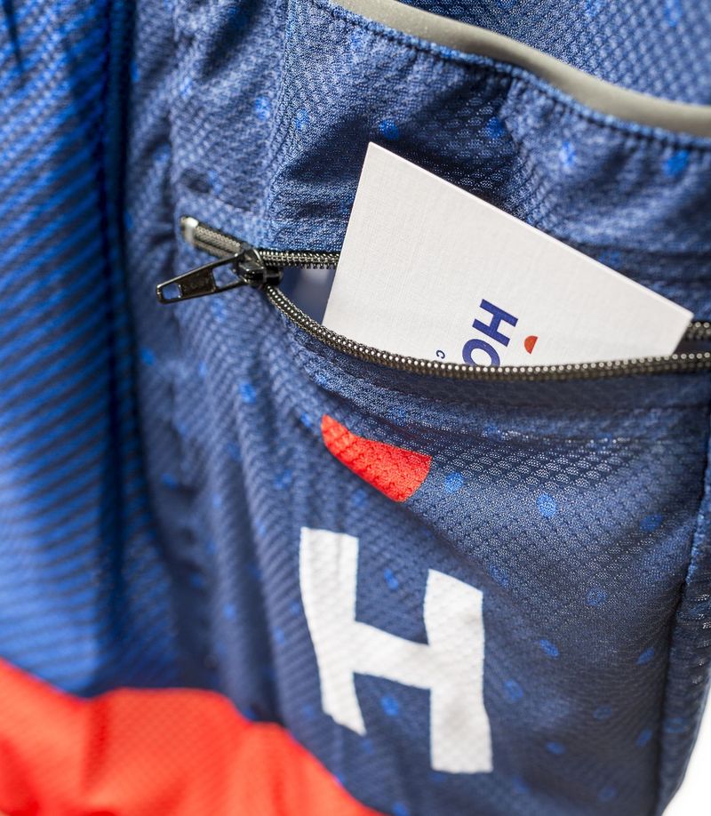 The jersey is feather-light, breathable and sweat dissipative. Special: water-repellent compartment with zipper at the back, sewn-in reflectors, perforated material under the arms for better ventilation, nickel-free zipper, sun protection factor 30-50.